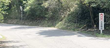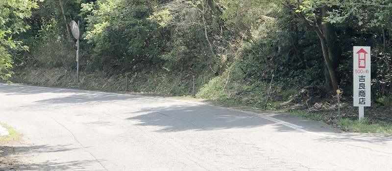 →[直進 500m右 吉良商店]の看板を過ぎて道なりに進む(ナビによっては直進看板の場所を右折と出るが必ず直進してください)
